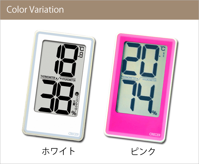 クレセル CRECER 温度計 湿度計 コンパクト 壁掛 スタンド リビング キッチン 子供部屋 寝室 見やすい 熱中症 インフルエンザ 風邪 予防 おしゃれ かわいい ホワイト 白 デジタル温湿度計 デカ文字 CR-2000W