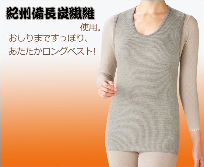 よく伸びてしっかりフィットする備長炭あたたかロングベスト!