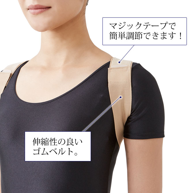 サポーター かんたん装着姿勢サポーター レディース 若い マジックテープ 伸縮性 ゴムベルト 姿勢 M L LL ベージュ 日本製