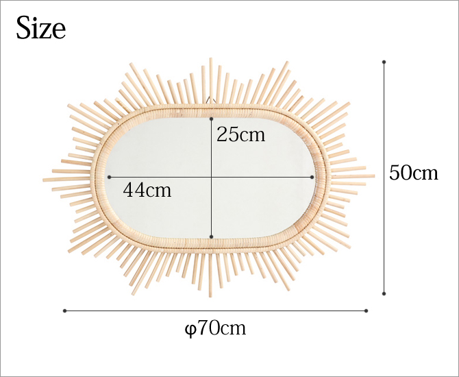 ひとつひとつ丹精こめて作り上げたハンドメイドのラタン製ウォールミラー。職人が手間をかけた逸品です。お部屋をオシャレに演出してくれます。