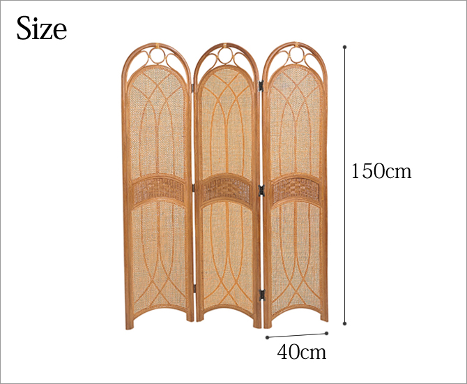 アーチ形のデザインがとってもおしゃれなラタン製スクリーン。