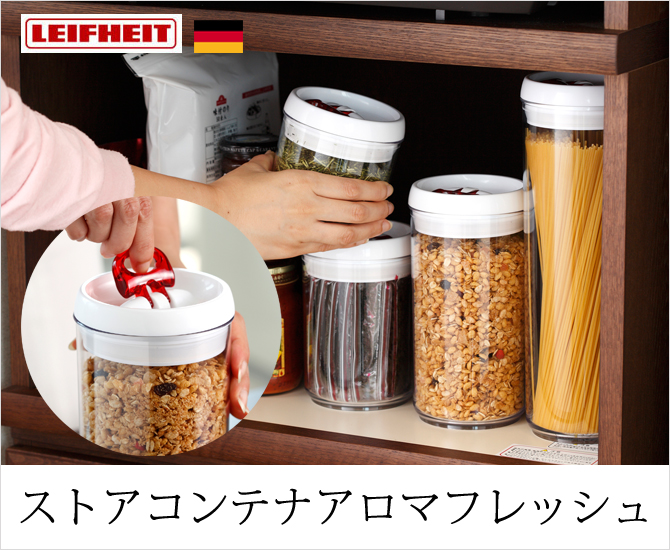 ライフハイトの製品は、1959年の創業以来、 使いやすい機能を備え高いデザイン性を持った革新的な家庭用品です。 精巧なロックテクノロジーのおかげで片手で簡単に開閉できます。 閉めると空気や湿気を遮断する事ができます。 シリアルや(コーンフレーク)やドライフルーツ、ナッツやパスタなどお好みな物を保存できます。 豆や乾物などはよりフレッシュさが長持ちし、香りを保ちます。 直径が同じなので積み重ねることもできます。 整理して収納出来るうえ中身を一目で見る事ができ便利です。 |