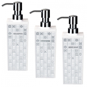 | セット内容: | ホワイト×3 「SHAMPOO」「RINSE」「BODYSOAP」と印字してあるシール付です。 |