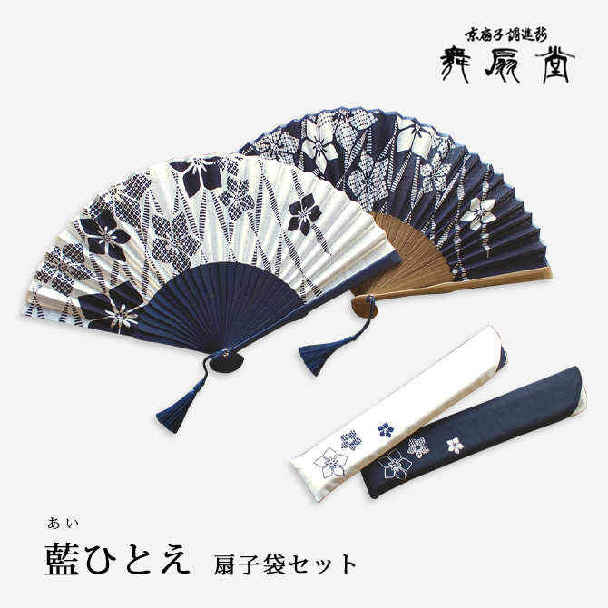 扇 扇子 せんす うちわ 藍ひとえ 扇子袋セット 上品 高級 女性用 レディース おしゃれ 和装小物 着物 京都 浴衣 舞扇堂 贈り物 プレゼント