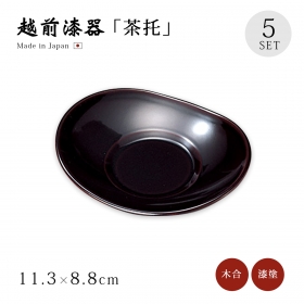 越前漆器の茶托5枚セットです。本漆手塗りの高級感あふれる茶托セットは、来客時にも重宝します。また大切な方への贈り物にもおすすめです。