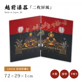 インテリア インテリア小物 屏風 二枚屏風 ひな人形 お雛様 おひなさま 桃の節句 女の子 お祝い 調度品 置物 和風 木製 漆塗り 手塗り 漆器 越前漆器 日本製 ギフト 高級 1個 沈金ひな人形 二枚屏風 黒 12-13302 女性作家 松原紗霧