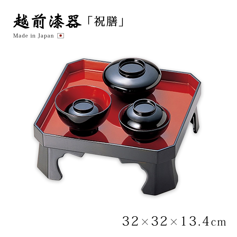 大切なお祝いの日に。本漆・手ぬりならではの高級感あふれる越前漆器の祝膳です。