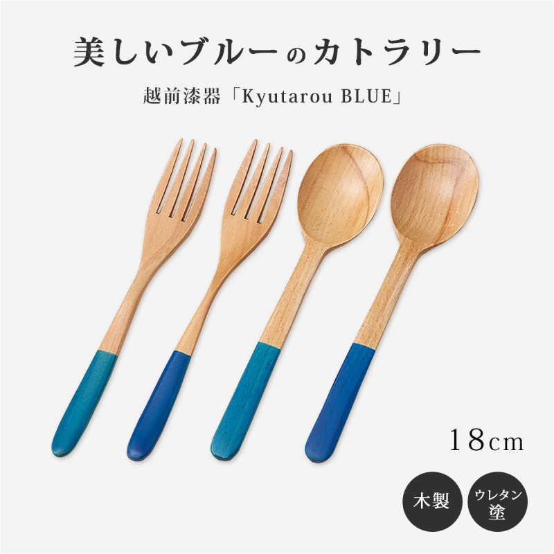 カトラリー フォーク スプーン 木製 贈り物 1本 Kyutarou BLUE フォーク・スプーン ブルー 青 久太郎 プレゼント
