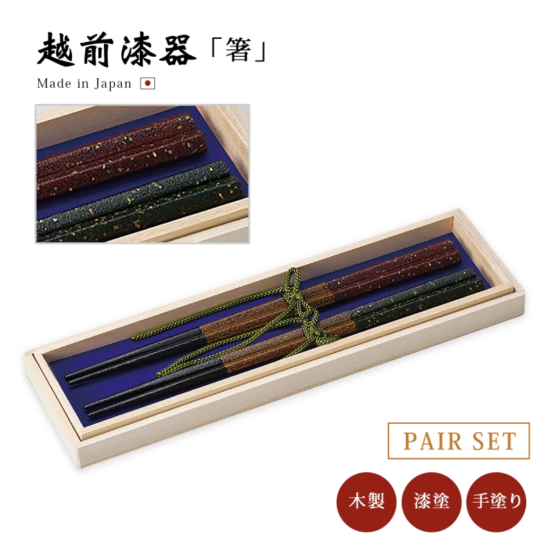 夫婦箸 箸 ペア ペアセット 木製 日本製 桐箱入り 2膳 越前漆器