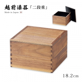重箱 お重 2段 四角 6寸 木製 ウォールナット 日本製 越前漆器