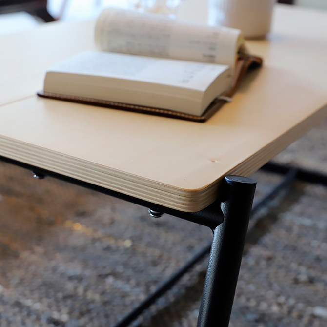 アイアンの脚とナチュラルな天板がぬくもりを感じさせる仕上がりの |