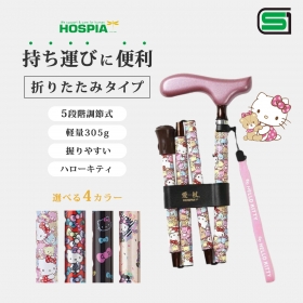 可愛いハローキティの杖。持ち運びにも便利な折りたたみタイプの杖(柄)です。シェイプされたネックが手に沿うようにフィットするスリムネック仕様。