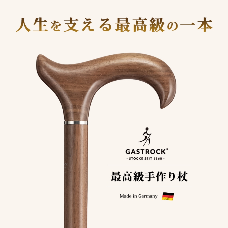 杖 手作り ドイツ製 高級 ウォールナット ガストロック LUXURYシリーズ GA-90 シニア おしゃれ 外出 お出かけ 長さ カット 調整 長さ調整 一本杖 高級杖 老舗 ガストロック かっこいい かっこいい杖 カッコイイ 格好いい 紳士 個性的