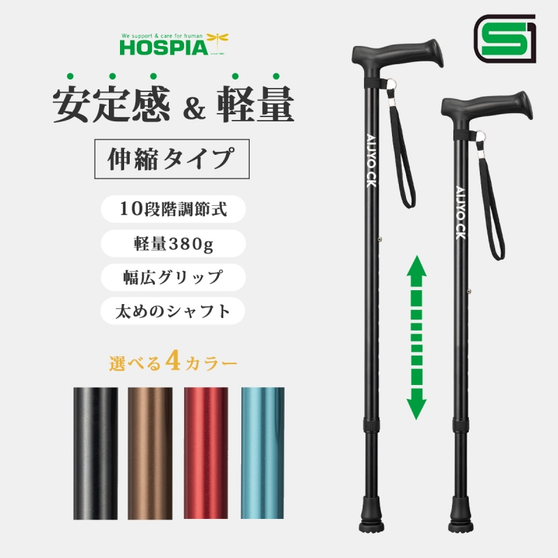 杖 幅広 太め 安定 伸縮タイプ リハビリ杖 リハビリ用 つえ ステッキ 愛杖 CKシリーズ