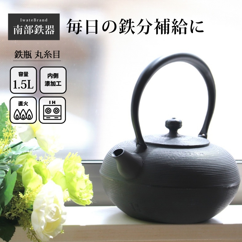 南部鉄器 南部鉄瓶 鉄瓶 IH 対応 直火ok おしゃれ 鉄瓶 丸糸目 1.5L OH01 ガス 直火 人気 おすすめ 白湯 日本製 鉄分補給 貧血 鋳造 鋳物 鉄分不足 おいしい 水 やわらかい かっこいい かわいい 可愛い 国産 囲炉裏 鉄分摂取