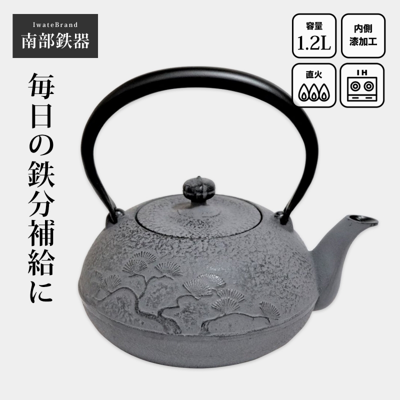 南部鉄器 南部鉄瓶 鉄瓶 IH 対応 直火ok おしゃれ 鉄瓶 姥口松 1.2L HO04 ガス 直火 人気 おすすめ 白湯 日本製 鉄分補給 貧血 鋳造 鋳物 鉄分不足 おいしい 水 やわらかい かっこいい かわいい 可愛い 国産 鉄分摂取