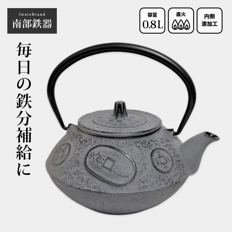 南部鉄器 南部鉄瓶 鉄瓶 直火ok おしゃれ おすすめ 鉄瓶 古銭 0.8L OH06 ガス 直火 鋳造 鋳物 鉄分不足 おいしい 水 やわらかい 正規品 おしゃれ かっこいい かわいい 可愛い 国産 囲炉裏 鉄分摂取
