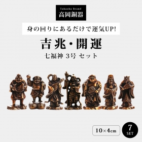 身の回りあるだけで運気UP!伝統工芸、高岡銅器の名匠 旭峰作の七福神3号セット。銅製で独特の高級感たっぷりです。